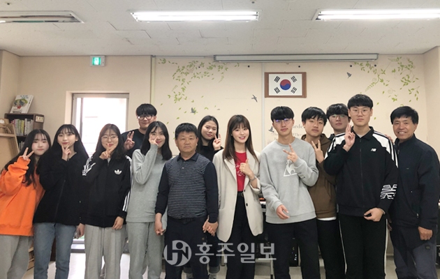홍성군청소년자원봉사단 청로회(회장 이철이) 학생들은 지난달 20일 홍성읍 소재 쉼터에서 홍성출신 트로트 가수 한여름을 만났다.<사진>
