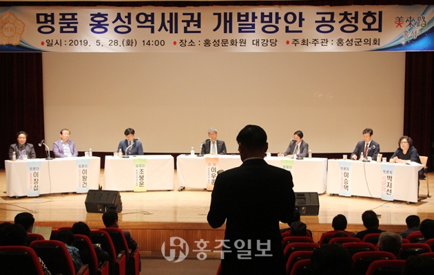 홍성군의회(의장 김헌수) 주최로 지난 28일 ‘명품 홍성역세권 개발 방안 공청회’가 홍성문화원에서 김석환 군수, 김헌수 의장, 홍문표 국회의원 등 군민 200여 명이 참여한 가운데 진행됐다.