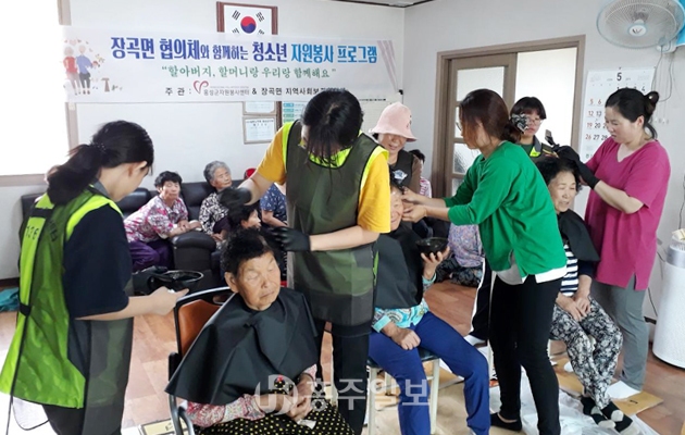 청소년자원봉사 장곡면 찾아 염색봉사 구슬땀
