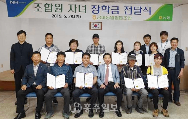 금마농협(조합장 이상동)은 지난 28일 회의실에서 장학금 전달식을 갖고 조합원 자녀 10명에게 각 150만 원씩 총 1500만 원의 장학금을 전달했다.<사진>