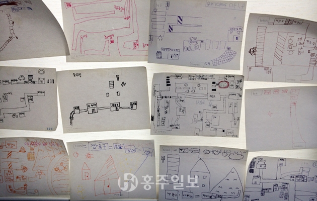 영화를 본 뒤, 일단 실제 동네 곳곳을 사실적으로 그려봤다. 그린 지도 안에서 보물이 있는 장소를 각자 설정한 후, 그 장소를 찾아가는 새로운 보물지도를 그려보게 했다. 보물지도란 설정을 다소 낯설어 하는 아이들도 있었지만 모든 친구들이 즐겁게 잘 참여했다. 그렇게 완성된 보물지도는 애초 교사들의 생각과는 많이 달랐다.
