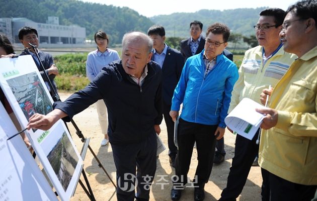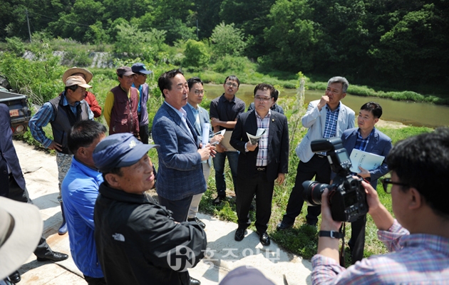 ‘광천읍 옹암리 보 설치 사업’(안전총괄과)은 사업이 시행되면 실제 보가 설치될 예정지인 광천읍 옹암리 현장에서 군의회와 집행부가 보 설치의 타당성등에 대한 의견을 주고받았다. 군의회는 “하천정비차원에서 수량확보위해 보를 설치한다는 것인데, 농업용수로서의 기능 이외에 토굴젖 축제 공간으로도, 스케이트장이나 물놀이 시설, 낚시대회 등 관광자원화도 가능할 것이다.(장재석)”라고 하자 “농업용수 확보가 목적인지 아니면 수변시설 구축을 위한 것인지 어느쪽으로 할 것인지 세부적으로 정확하게 검토해 추진할 것(이병희)”을 요구했다.