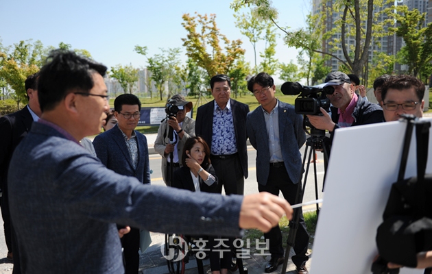 ‘내포 이주자택지 진출입로 교차로 신설’(신도시시설관리사업소)은 홍예로에서 이주자택지로 직접 진출입할 수 있도록 교차로를 신설하여 현재 좌회전 차로가 없어 발생하는 교통불편을 해소하겠다는 계획이다. “교통사고 위험지역이니 조속한 조치해야한다.(문병오)며 “거리를 잘 계산하여 시야를 확보해야하는 곳이다(장재석)”라는 지적과 함께 “도청 설계부터 잘못된 부분이 있으며, 잘 검토해서 차질없이 진행되도록 해달라.(김헌수)”고 군의회는 요청했다. 교차로 신설은 도 교통영향평가심의위원회에서 한차례 반려된 적이 있는 교차로 신설 건은 다른 도로들과 함께 교통량을 조사한 후 오는 8월에 심위위원회에 재상정될 계획이다.