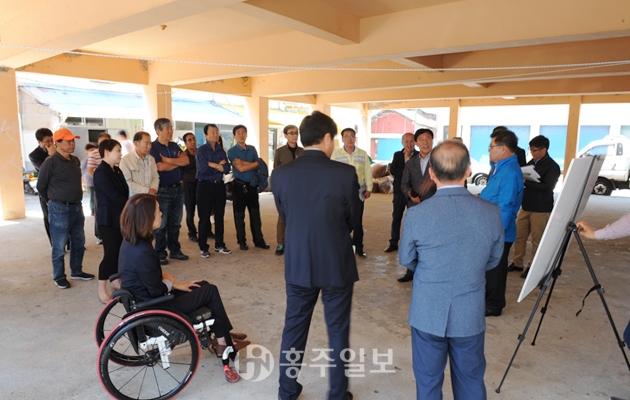 ‘지역발전투자협약 시범사업’(기획감사담당관/농정발전기획단)은 사업비 182억원을 들여 구항면, 홍동면, 장곡면, 은하면 등에 지역 먹거리 선순환체계를 확립하고 종합 유통망을 구축하겠다는 사업이다. 이날 군의회는 ‘친환경학교공공급식센터’와 ‘비즈니스지원센터’들어설 은하면에 위치한 새우젓특화단지 일원을 찾아 집행부로부터 사업현황에 대한 설명을 듣고 문제점들과 보완점들을 지적했다. 집행부는 기존건물을 활용할 것인지에 대한 군의회의 질의에 “리모델링과 신축 가운데 어느것이 나을지 검토해서 결정하겠다.”고 대답했다. 군의회는 “해외에 가보니 금산은 아는데 홍성이 유기농 특구라는 것을 모른다. 홍보 부족인 듯하다(이선균)”는 지적과 “홍성이 유기농특구로 재지정 받았고, 이에 더해 학교공공급식센터 등 먹거리 통합지원센터가 조성되면 타지역에는 없는 특별한 시설이 될 것이다. 시너지 효과가 클 것 같다. 필요하면 의회차원에서 적극 대응할 필요가 있다.(김기철)”며 적극적인 관심을 보였다.
