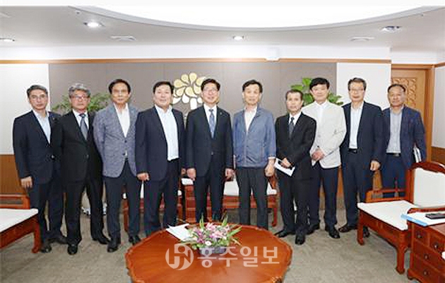 내포신도시 소상공인연합회 회장단은 지난 7일 도청 제1접견실에서 양승조 도지사를 면담하고 내포 경제 활성화 대책을 요청했다.<사진>