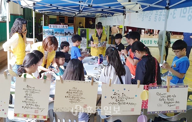 충청남도홍성교육지원청(교육장 주도연)은 지난 1일 관내 초등학생 300여 명이 함께한 가운데 홍성 지역의 독립운동 역사를 중심으로 시대별 역사, 문화, 예술 체험 활동을 체험할 수 있는 ‘2019 만해생각 역사축제’를 개최했다.