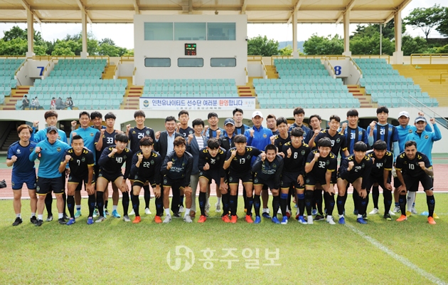 2002년 한일 월드컵 주역 유상철 선수가 홍성에 출현했다. 아니 이번엔 선수가 아닌 프로축구단 감독으로 인천유나이티드 FC(대표이사 전달수) 팀을 이끌고 홍성종합경기장 일원에서 전지훈련을 했다. 인천유나이티드는 6월 A매치 휴식기(3~14일) 동안에 전지훈련을 할 장소를 물색하던 중 선택한 곳이 홍성이었다. 한창 훈련중이던 홍주종합경기장에서 지난 7일 유 감독을 만나 홍성 땅을 밟게 된 경위를 들을 수 있었다.