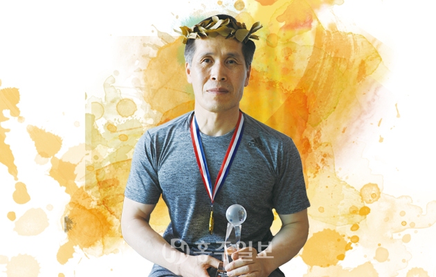 말은 비록 그렇게 했지만 다부진 체격에서 뿜어 나오는 단단함만큼이나 마라톤에 대한 열정은 예전과 별반 달라보이지 않았다. 1995년 ‘대구국제휠체어마라톤대회’ 10km 구간 출전을 시작으로 올해까지 마라토너로서 생활한 지 햇수로 24년째다. 첫 출전 성적은 5위, 그러나 그의 성적은 해를 거듭할수록 향상됐고, 2014년부터 내리 4년간 ‘서울국제휠체어 마라톤대회’에서 우승을 맛보다 작년은 2위에 머물렀다. 그는 이 점을 못내 아쉬워했다. 왜냐하면 작년 대회에서 우승해 5연패를 달성하고 은퇴하려고 했었기 때문이다. 하지만 작년에 우승을 못한 것이 오히려 그의 근성을 자극했던 것일까. 그는 건강이 유지되는 한 계속해서 달리고 싶다고 한다. 지난 8년동안 지역언론의 관심에서 멀어진 기간 그의 성적은 놀라웠다. 의정부전국휠체어마라톤대회 6연패, 문화체육부관광배 전국어울림 마라톤대회 우승, 작년엔 충남장애인체육대회에서 단거리에 출전해 100m와 200m 종목에서 각각 1위에 오른 것이다.