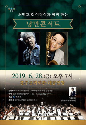 홍성군은 6월 ‘문화가 있는 날 주간’을 맞아 오는 28일 오후 7시 홍주문화회관 대공연장에서 낭만가수 최백호와 대한민국 최고의 색소폰 연주자 이정식이 함께하는 ‘낭만콘서트’를 개최한다.<사진>