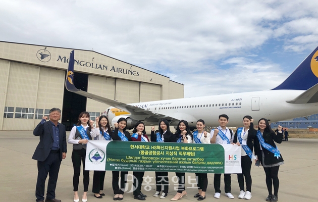 한서대학교(총장 함기선)는 지난 13일 항공융합학부와 항공학부 학생 10명이 기본 소양 교육, 격납고 관리, 활주로 보수관리 등 7가지 영역에 걸친 몽골공항공사 직무체험에 참가해 이론·실기 교육을 받았다.