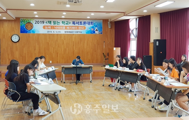 지난 5일 홍성여자고등학교(교장 심상룡)에서 2019 ‘책 읽는 학교’ 독서 문화 확산을 위한 독서토론대회가 열렸다.<사진>