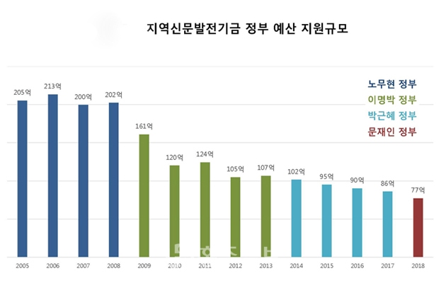 이날 토론회는 국회 문화체육관광위원회 여당 간사인 신동근 의원실과 지역신문발전위원회 주간지선정사협의회, 사단법인 바른지역언론연대가 주최했다. 발제를 맡은 이영아 바른지역언론연대 회장은 “건강한 지역신문에 대한 투자는 민주주의를 위한 필수적 공공투자”라며 “지방분권 강화와 민주주의 성장의 동력”이라고 말했다. 이어 이 회장은 선진국의 지역신문 지원제도 사례를 들며 “우리나라에서 채택하고 있는 간접지원은 열악한 지역신문 경영구조를 개선하는 데 효과적이지 않기 때문에 ‘직접적 경영지원’이 필요하다”는 점을 강조했다. 또한 “문재인 정부가 지역신문 활성화를 주요공약으로 내걸었음에도 임기 첫해인 작년 예산을 역대 최저 수준으로 편성했다”며 “2005년 처음 조성됐을 때 한해 약 200억원이던 기금(지원규모)이 77억원까지 줄어든 것은 큰 문제”라고 지적했다.