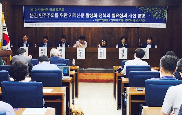 ‘지역 주간신문 활성화를 위한 정책개선 방향에 대한 토론회’가 신동근(민주당)·심상정(정의당)·이동섭(바른미래) 국회의원이 참석한 가운데 지난 25일 국회도서관에서 개최됐다. 이날 토론회에서는 △지방분권이 강화되는 시점에서 건강한 지역신문을 육성해야하는 당위성 △현행 지역신문 지원제도의 한계 △한시법으로 시행되고 있는 지원특별법의 상시법 전환 시 고려해야 할 부분 등에 대한 내용이 주로 다뤄졌다.