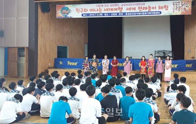 이번 체험활동은 다문화꿈길성장캠프와 교육복지우선지원사업이 연계해 1학년 전체를 대상으로 홍성군건강가정다문화가족지원센터 다문화 전래놀이 강사들과 중국, 일본, 베트남, 필리핀의 전통놀이와 의상체험을 하는 시간을 가졌다.