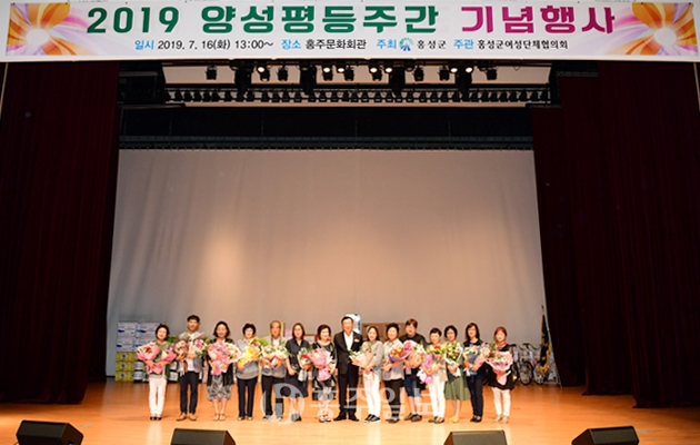홍성군여성단체협의회(회장 전양숙)는 지난 16일 홍주문화회관 대공연장에서 군민 600여 명이 참석한 가운데 ‘2019년 홍성군양성평등주간 기념행사’를 개최했다.<사진>