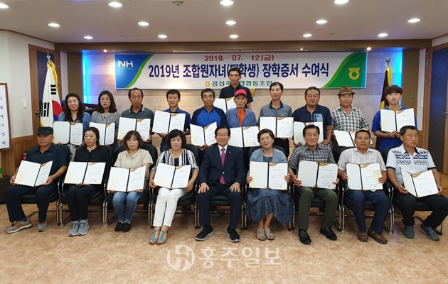 홍성축협(조합장 이대영)은 지난 12일 본점 강당에서 조합원과 자녀 22명이 참여한 가운데 조합원 자녀 장학금 수여식을 진행했다.<사진>