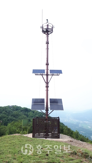 홍성군은 지난 11일 백월산 정상부에 설치돼 있던 산불무인감시카메라 이전 설치를 완료했다.<사진>