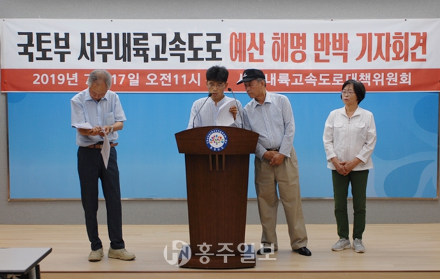 ‘서부내륙고속도로반대투쟁위원회’(위원장 윤중섭, 이하 반투위)는 지난 17일 충남도청 프레스센터에서 기자회견을 열고 국토교통부가 지난달 20일 발표한 “서부내륙 고속도로 민간투자사업 적법하게 추진 중”이라는 정책브리핑이 “국민을 기만하는 허위 해명”이라며 재반박에 나섰다.
