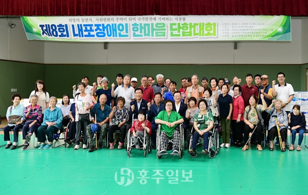 홍성·예산의 지체장애인들의 발전과 화합을 다지기 위해 매년 홍성군과 예산군을 번갈아가며 개최되고 있는 ‘제8회 내포장애인 한마음 단합대회’가 연 중 가장 덥다는 대서인 지난 23일 홍성군장애인스포츠센터에서 개최됐다.