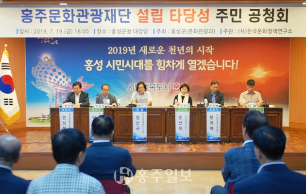 홍성군의회는 제261회 임시회 기간 중에 집행부로부터 (가칭)홍주문화관광재단 설립과 관련한 업무보고를 받는 과정에서 지난 19일 열린 재단설립 공청회가 ‘당위성’과 ‘타당성’ 위주로만 설명됐던 점에 대해 집행부를 질타했다.<사진>