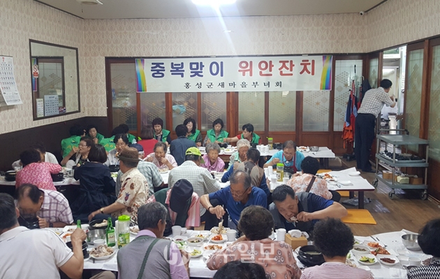 홍성군새마을부녀회(회장 전양숙)는 지난달 22일 중복을 맞아 홍성읍 소재 경성회관에서 관내 시각장애인 40여 명을 초청해 삼계탕을 대접하고 티슈 등 기념품을 나눠주며 정을 나눴다.