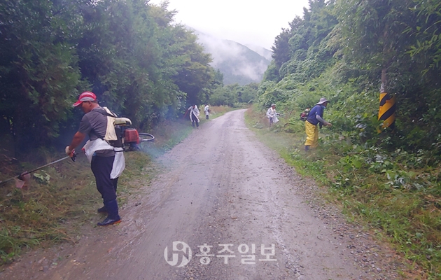 홍성군 광천읍 이장협의회(회장 박창덕)는 지난달 25일 오서산 등산로 일원에 대한 제초작업을 실시했다.<사진>