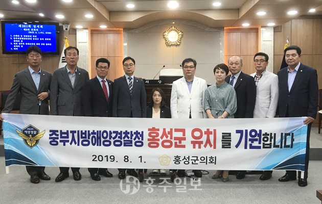홍성군의회(의장 김헌수)가 ‘중부지방해양경찰청’ 유치를 위해 팔을 걷고 나섰다.<사진> 중부지방해양경찰청은 북으로 서해 5도부터 인천, 경기를 비롯해 충남 서천까지 남한 육지면적의 약 40%에 달하는 해역을 관할하는 국가기관이다.