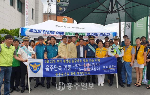홍성경찰서(서장 김기종)은 지난 1일 홍성읍 복개주자창 일대서 홍성군청, 홍성소방서, 시민안전 봉사대 등 40여 명과 함께 불법 주·정차 근절 및 음주 운전 관련 도로 교통법 홍보를 위해 합동 캠페인을 실시했다.