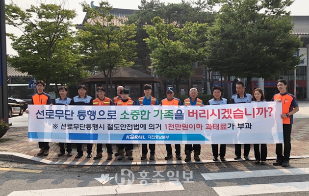 한국철도공사 대전충남본부 천안시설사업소 예산시설팀(팀장 최종수)은 지난 5일 홍성역 광장에서 홍성역 직원들과 함께 대국민 청렴의식 제고와 반부패·청렴문화 확산, 철도교통캠페인 시행으로 철도사고 사례 교육, 철도 홍보 등 ‘대국민 교통안전·청렴캠페인’을 실시했다.