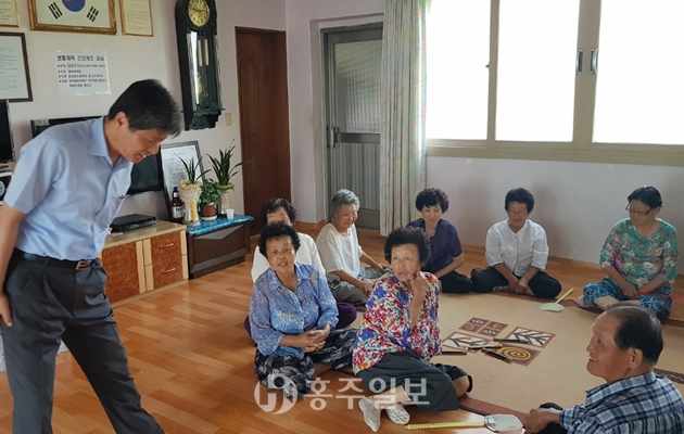 홍성읍(읍장 이희만)은 연일 계속되는 폭염경보에 대비해 지난 5일 무더위 쉼터로 지정된 경로당 7개소를 방문해 폭염에 취약한 관내 노인들의 건강을 살피고 여름나기 실태를 점검했다.<사진>