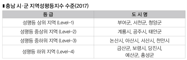 홍성군 성평등지수가 도내 15개 시·군 중 최하위권에 머무르는 것으로 나타났다.