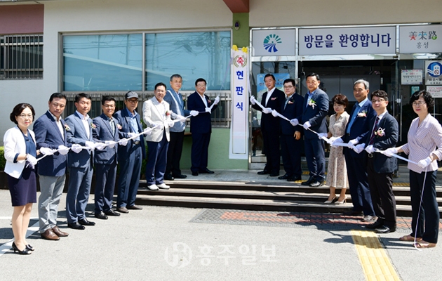 군 치매안심센터는 지난 14일 갈산면 행정복지센터에서 김석환 홍성군수 등 내빈, 관계자와 주민 100여 명이 참석한 가운데 ‘치매안심 갈산면’ 현판식을 진행하고 ‘등대지기’ 1호 업체에 지정서를 전달했다.