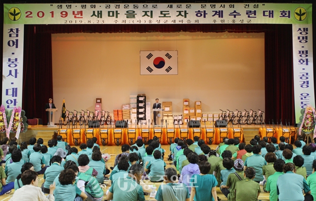 (사)홍성군새마을회(지회장 김봉원)는 지난달 23일 홍주문화체육센터에서 내·외빈이 참여한 가운데 ‘2019년 새마을지도자 하계수련대회’를 개최했다.<사진>