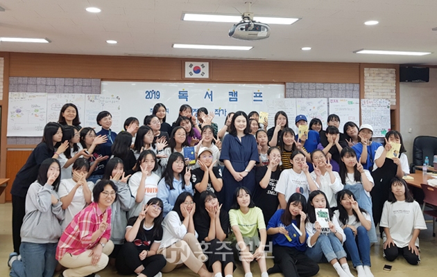 지난달 31일, 홍성여자중학교(교장 임광섭) 도서관에서 작가 초청 강연회가 열렸다.<사진> 대상은 홍성여자중학교 독서동아리 학생들이었다. 오전에는 토론회와 비누 만들기 체험이, 오후에는 ‘하이킹 걸즈’, ‘다이어트 학교’, ‘닌자 걸스’를 포함해 26권의 책을 쓴 김혜정 작가의 초청 강연이 예정돼 있었다.