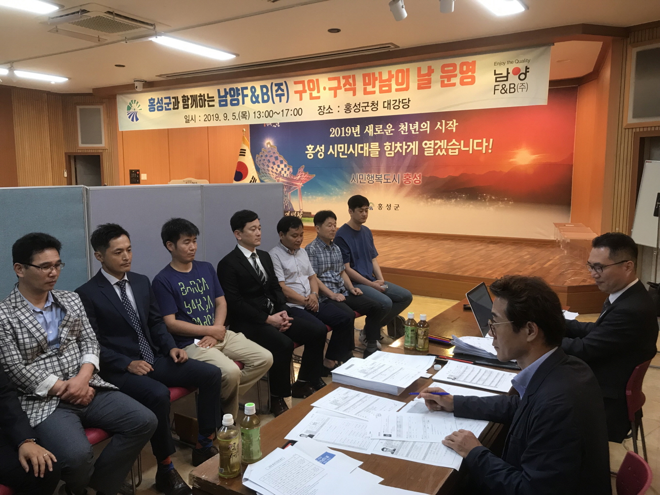 홍성군은 군 경제과와 관내 식음료생산 업체인 남양F&B(주)와 함께 5일 오후 2시부터 군청대강당에서 ‘구인·구직 만남의 날 행사’를 진행하고 있다.