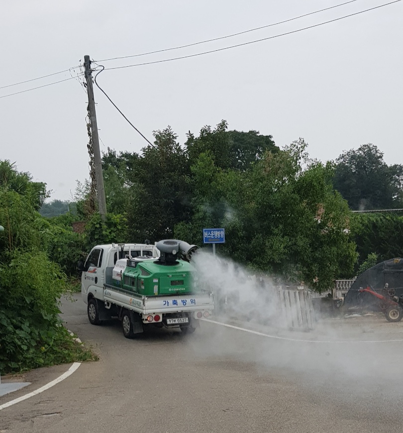공동방제단, 읍·면 소독차량을 총동원해 축산시설 밀집단지·취약농장 등을 집중 소독하는 것은 물론 농장 자체적으로도 이동식 고압분무기 등을 활용해 소독할 예정이다.