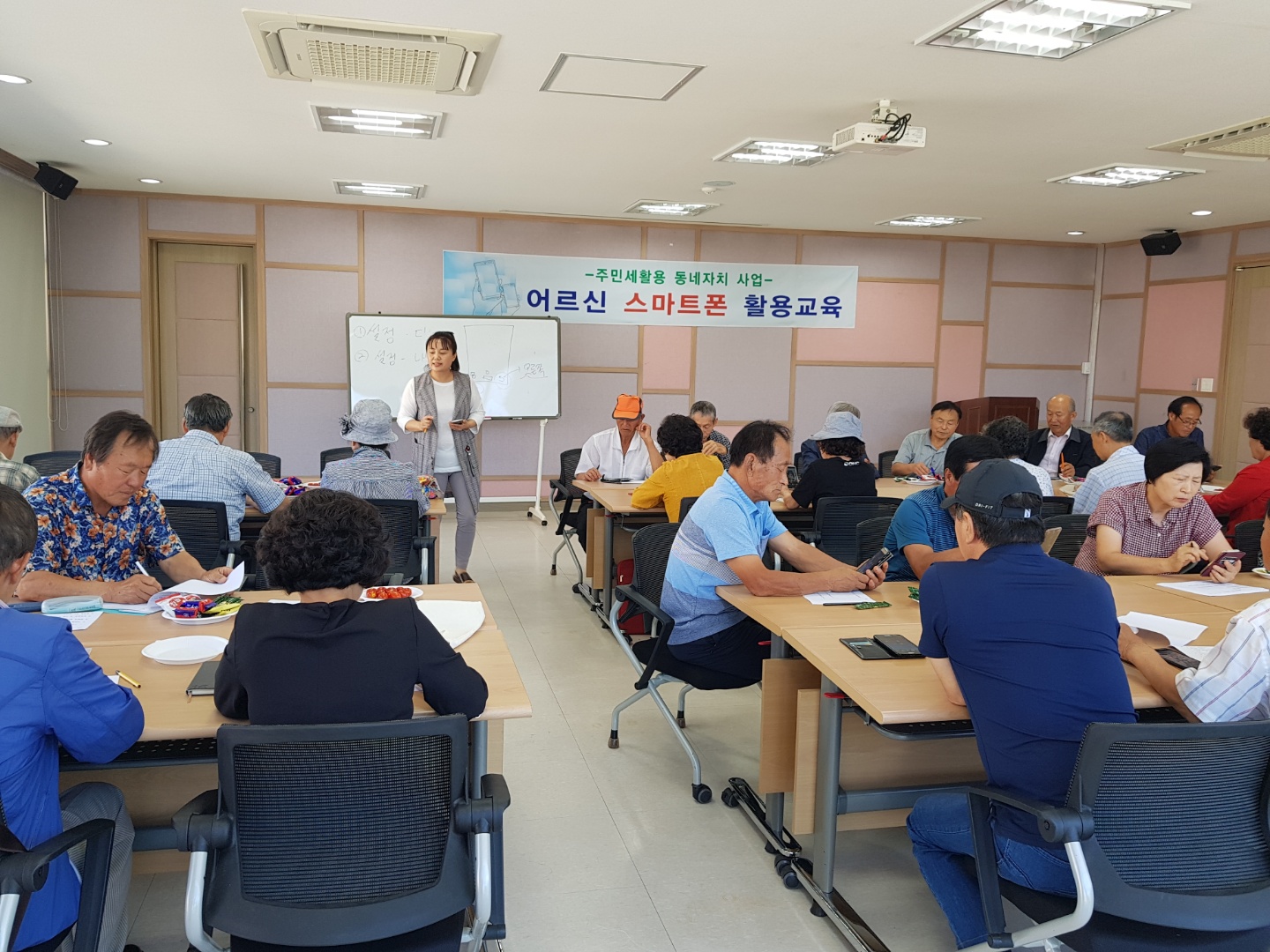 주민세활용 우수 시·군 사업의 일환으로 실시되는 이번 교육은 30여 명의 주민이 전문 강사의 지도 아래 스마트폰 기본 기능을 익히고 스마트폰 앱 활용법과 관련된 내용을 교육받는다.