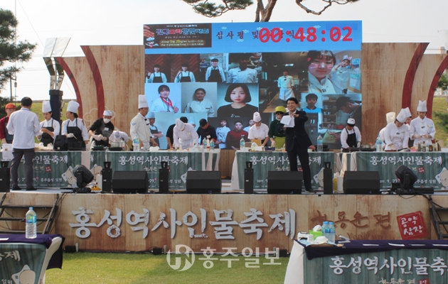 홍성군이 주최하고 (사)한국음식문화진흥연구원이 주관한 ‘전국요리경연대회’가 지난달 28일 홍성역사인물축제 주무대에서 6개 시·도에서 온 12팀의 요리팀이 참여한 가운데 ‘홍성을 빛낼 대표음식을 찾아라’는 주제로 개최됐다.<사진>