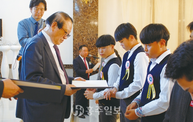이날 주도연 홍성교육장, 신주철 광천읍장, 한관우 ㈜홍주일보사 대표이사, 오석범 홍주지명찾기운동본부장, 장순화 광천읍주민자치위원장, 관내 각급학교 교장 등 내빈과 장학생 및 가족 등 200여 명이 참석한 가운데 수여식이 진행됐다.