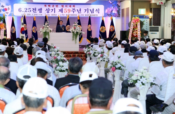 지난 24일 홍성군재향군인회(회장 허문)가 주관하고 홍성보훈지청(지청장 한경원)이 후원한 6․25전쟁 상기 제59주년 기념행사가 향군회관에서 열렸다.