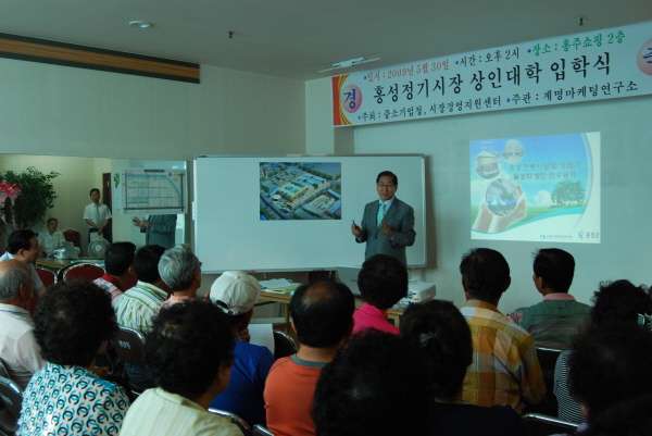 홍성군은 전통재래시장 활성화를 위한 홍성정기시장 상인대학을 운영하고 있다. 지난 5월 30일부터 오는 7월 19일까지 계속되는 상인대학은 유통산업 환경변화에 따른 지역경제기반인 전통시장의 경쟁력 강화를 위한 상인들의 경영마인드 제고와 판매기법 등의 개선으로 전통시장 운영의 내실을 기하기 위해서다. 또한 수요자 중심의 시장육성으로 전통시장의 경쟁력 강화 및 유통산업의 균형발전을 도모 지역경제 활성화에 기여하기 위한 방안의 일환으로 실시하고 있다는 것이 홍성군청 경제과 박경화 담당의 설명이다.