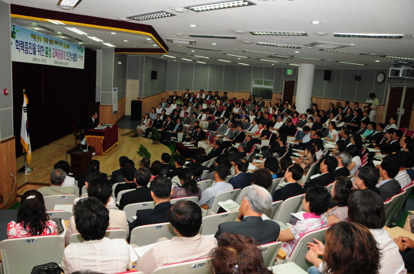 한편 김종성 교육감은 오후 2시부터 홍성고등학교 한빛관에서 홍성지역 학교장과 운영위원, 학부모, 교육행정자문위원, 삼락회 임원 등 교육관계자 200여명이 참석한 가운데 학력증진을 위한 홍성지역 교육공동체 의견 수렴회를 진행했다.