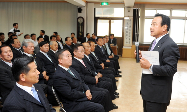 군청 소회의실에서 도의원, 군 의회의원을 비롯한 관내 기관 단체장 등 80여명을 대상으로 간담회를 가진 자리에서 세계경제 침체 속에서도 2009 안면도꽃박람회의 성공 기적은 바로 주민들의 적극적인 관심과 지원으로 가능했다며 고마운 뜻을 전하고 내년에 개최하는 '2010 대백제전'에도 변함없는 협조를 당부했다.