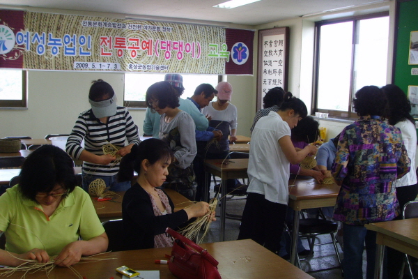 잊혀져가는 전통의 중요성과 우수성을 널리 알리고자 실시된 이번 교육은 국내 유일의 백길자 홍성댕댕이장(충남무형문화재 31호)과 김성환(댕댕이공예 이수자 ․충청남도 관광기념품공모전 입선) 강사를 초빙해 생활공예 과정을 진행하였다.