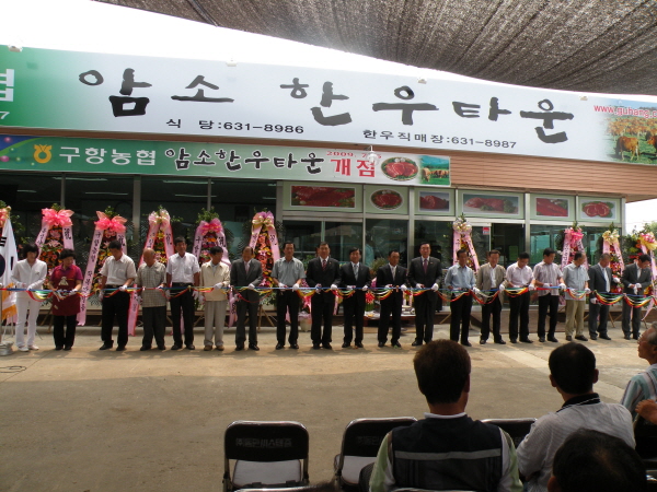 지난 6일 구항농협에서 군의회 이규용 의장과 오배근 도의원, 관내 기관단체장과 주민 200여명이 참석한 가운데 암소한우타운을 개점했다.