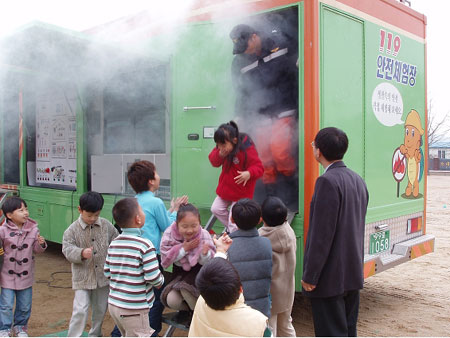 이동형 안전 체험장은 4.5톤 트럭을 개조하여 연기탈출 및 피난 등 총 5종의 체험설비를 장착한 차량으로 어린이부터 어른까지 누구나 생생하게 소방체험을 할 수 있다.