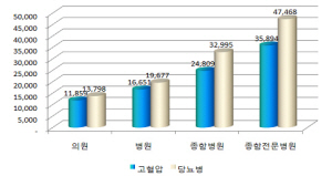 당뇨병, 의원급에 비해 종합전문병원급이 4배 이상 높아