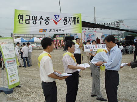 전국적인 명성이 있는 남당리 대하축제 개막식과 행사현장에서 현수막을 이용해 관심을 유도하고, 현금영수증 홍보문구가 새겨진 어깨띠를 두르고 지난 7월부터 달라진 현금영수증 제도 등이 수록된 리플릿과 현금영수증 카드가 새겨진 장바구니 등을 배포하며 축제에 참석한 지역주민과 전국의 관광객들에게 현금영수증 주고받기의 필요성과 세제혜택을 설명 하였다.