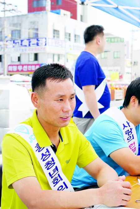 지난 1일 홍성읍 복개주차장에서 사랑의 헌혈운동 행사가 열렸다. 늦더위가 기승을 부리는 날씨였지만 행사를 준비한 홍성JC 회원들은 누구 한 사람 불평 없이 헌혈에 동참한 사람들을 친절하게 맞이했다. 청년의 힘으로 지역 발전을 위해 누구보다 앞장서겠다고 다짐하는 홍성 JC 회원들. 그 중심에는 박성완(39) 회장이 있다.