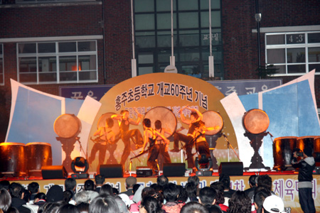 홍주초등학교 개교 60주년 기념 제14차 총동문회 기별체육대회가 지난 13일과 14일, 양일간 모교 운동장에서 펼쳐졌다. 사진은 13일 전야제에서 개막을 알리는 폭줒과 함께 시작된 탄천 페스티벌 개·폐막 공연팀인 블랙드럼의 공연이 펼쳐지고 있다.